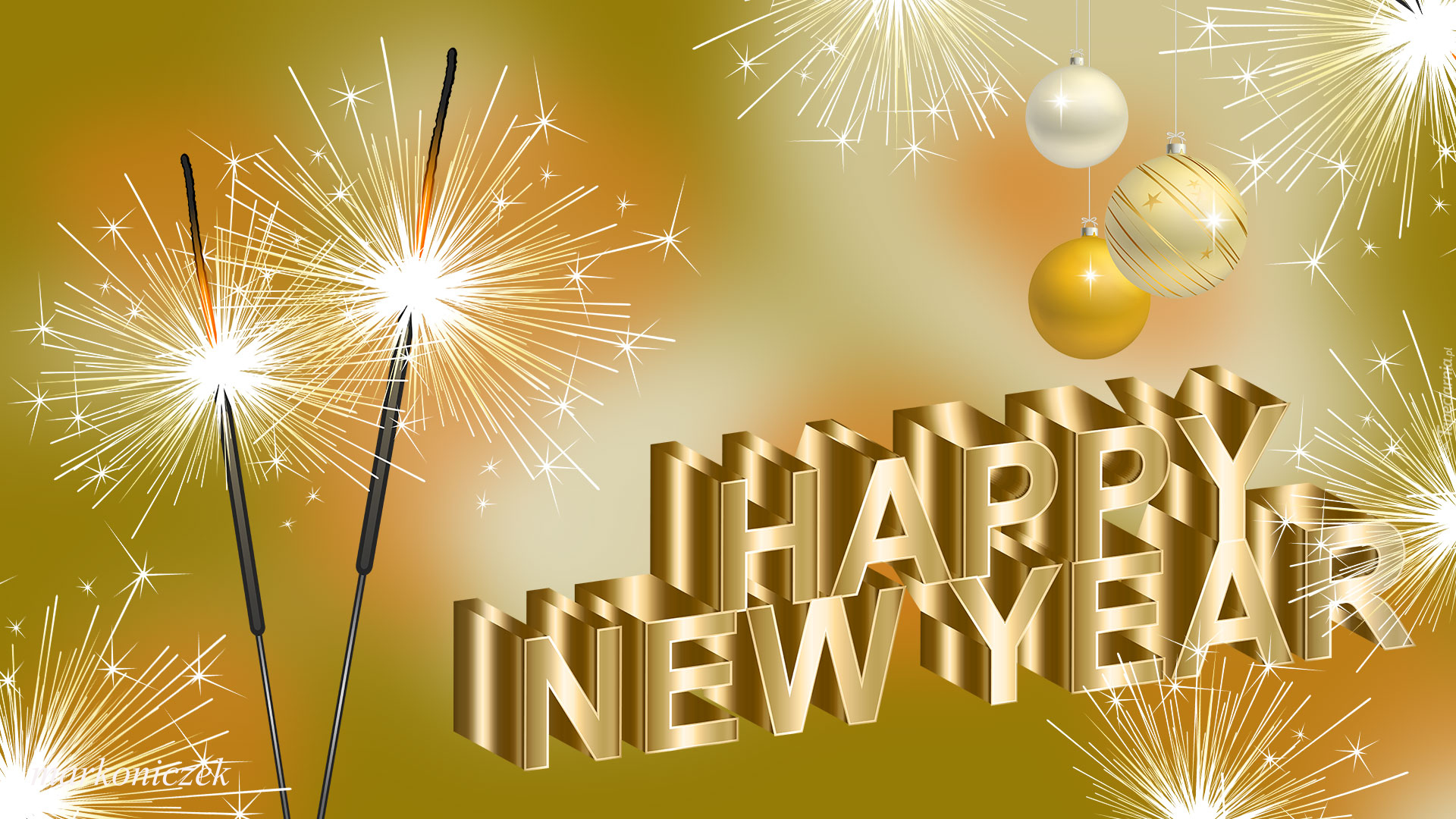 Edytor tapety: Życzenia noworoczne wśród ogni sztucznych w grafice