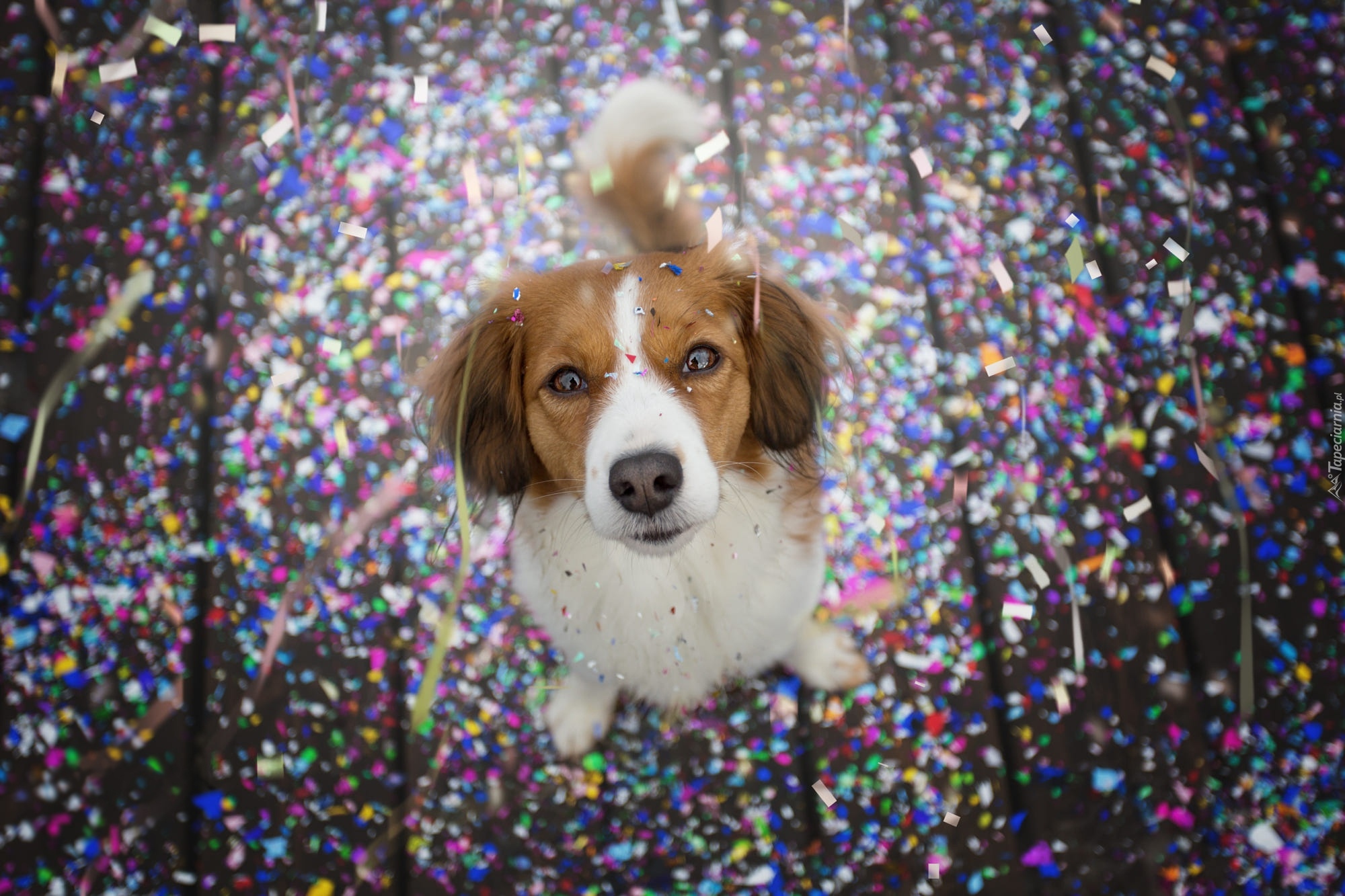 Edytor tapety: Płochacz holenderski w konfetti