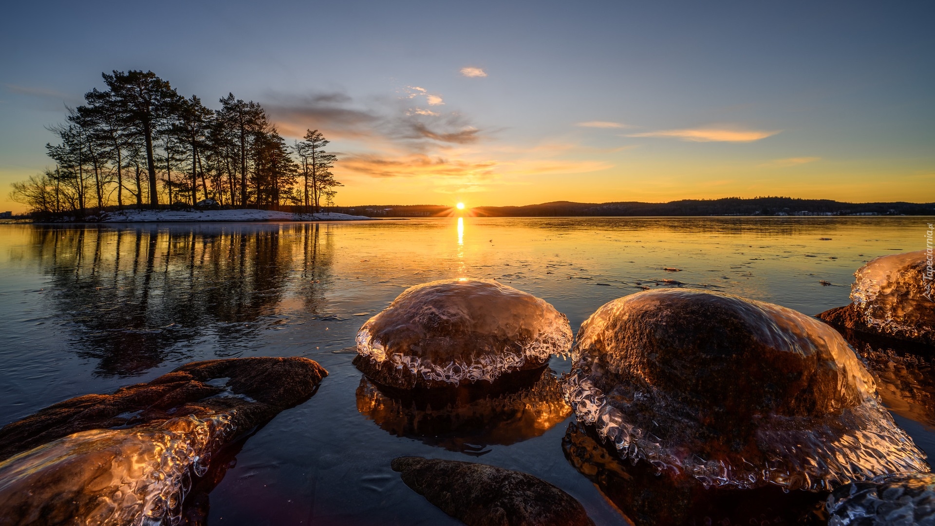 Edytor tapety: Oblodzone kamienie w jeziorze