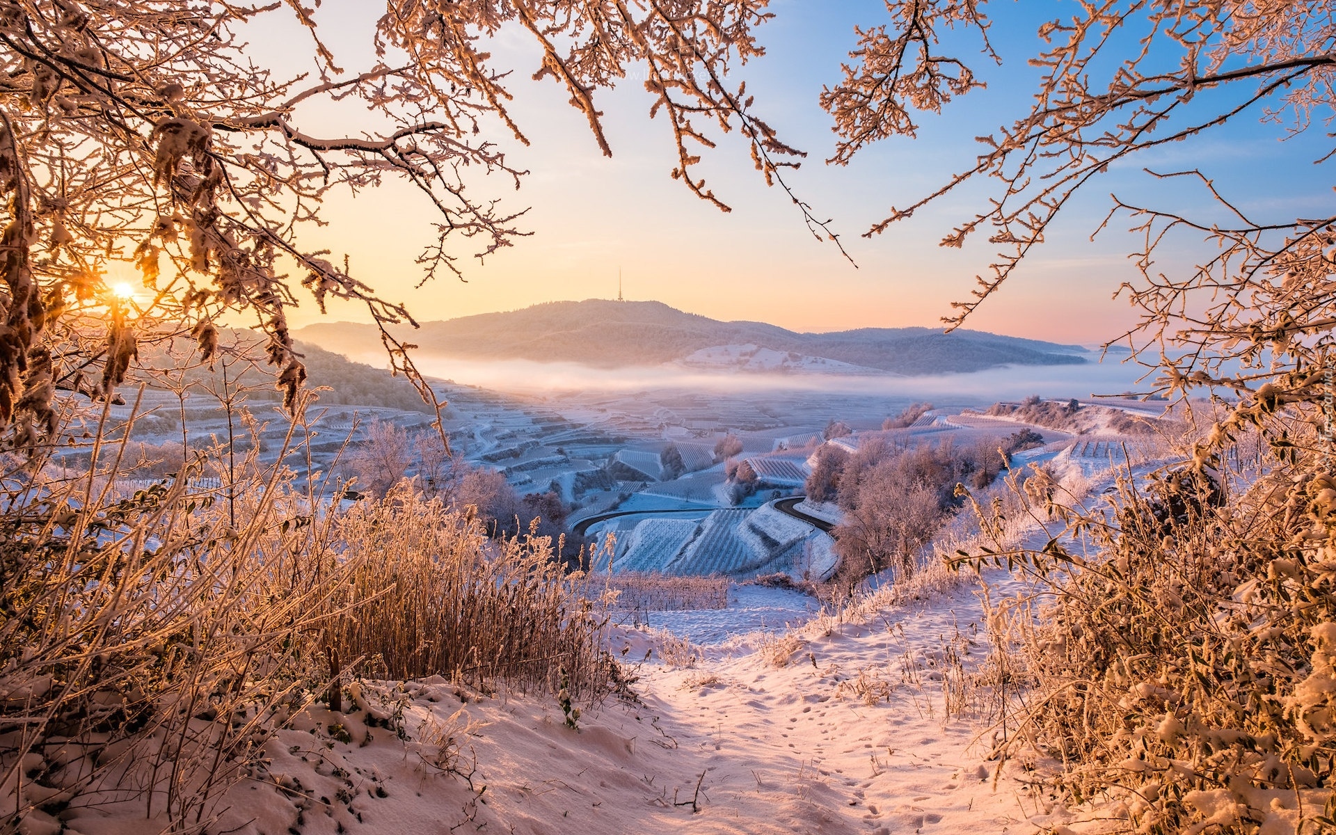 Edytor tapety: Zimowy poranek na wzgórzach w Kaiserstuhl