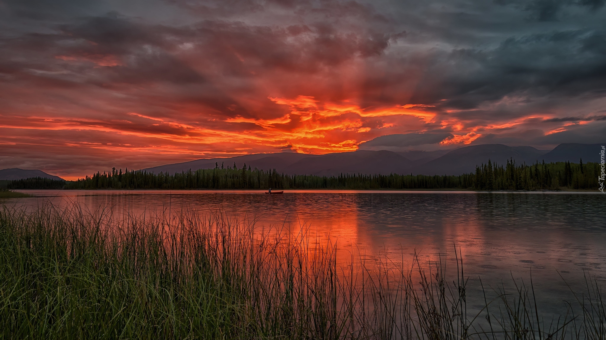 Edytor tapety: Malowniczy zachód słońca nad jeziorem Boya