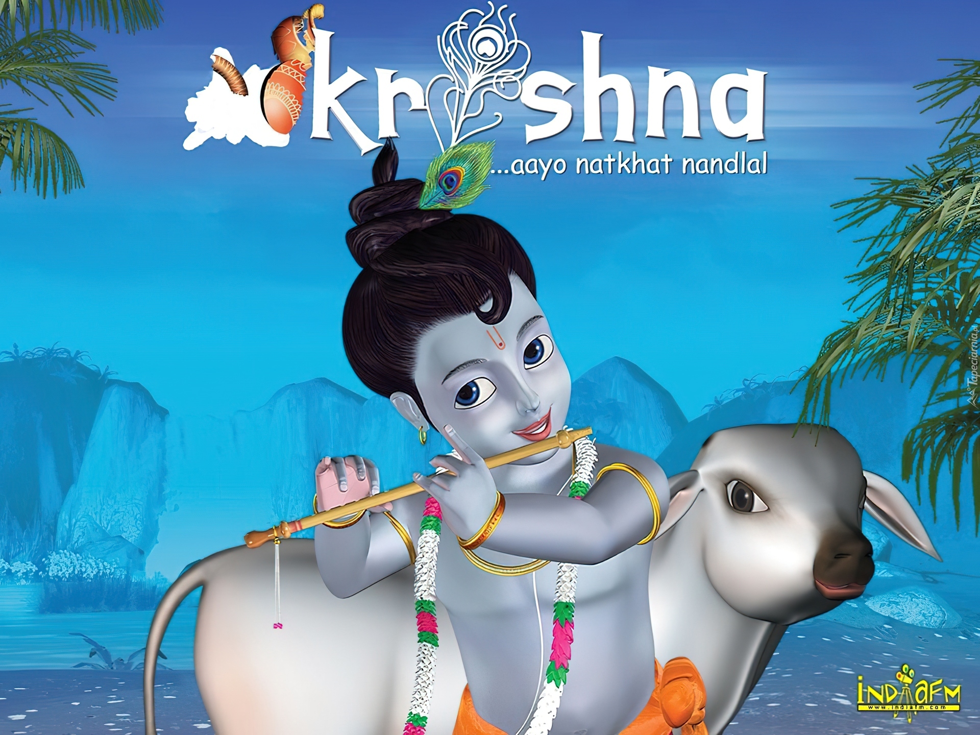Edytor tapety: Krishna, dziewczyna, gra, cielak