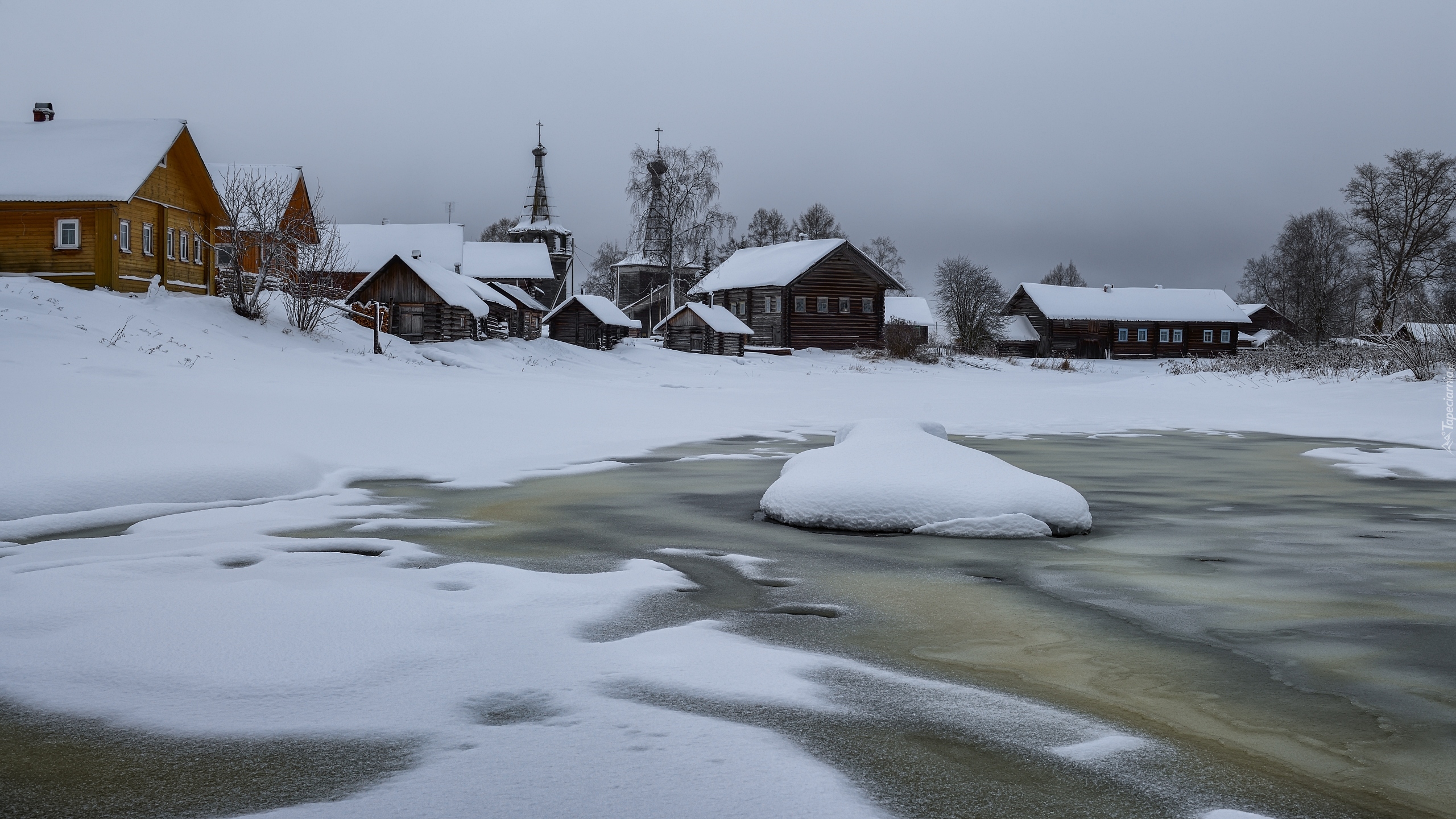 Edytor tapety: Rosyjska wieś Kimzha zimą