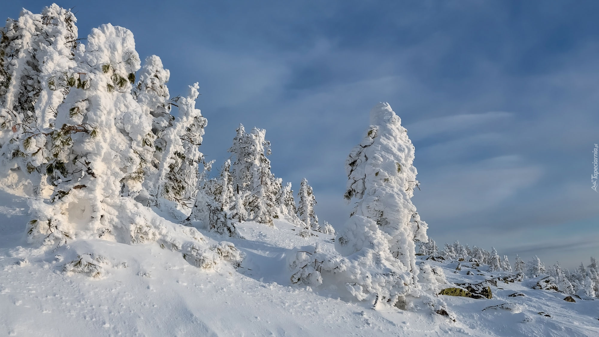 Edytor tapety: Drzewa w śniegu na wzgórzu