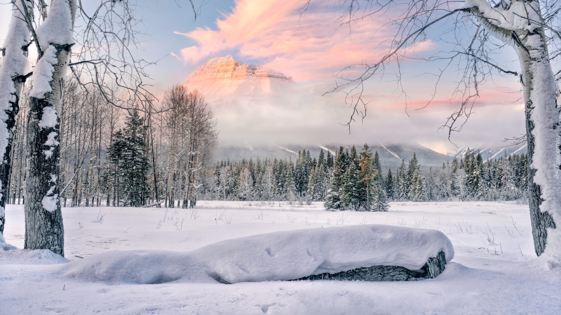 Edytor tapety: Mgła nad Parkiem Narodowym Banff zimową porą