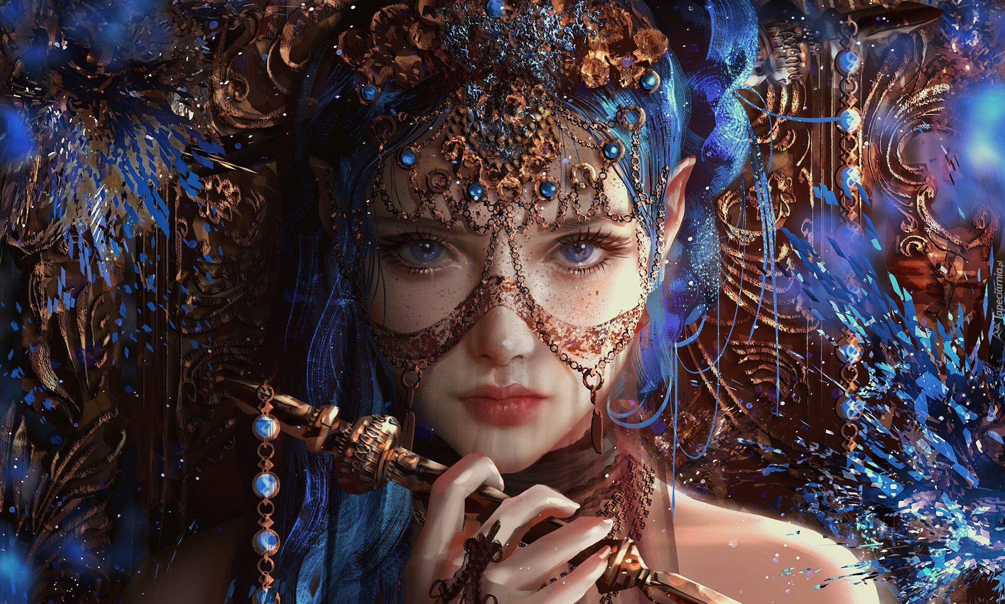 Edytor tapety: Niebieskooka dziewczyna elf w grafice