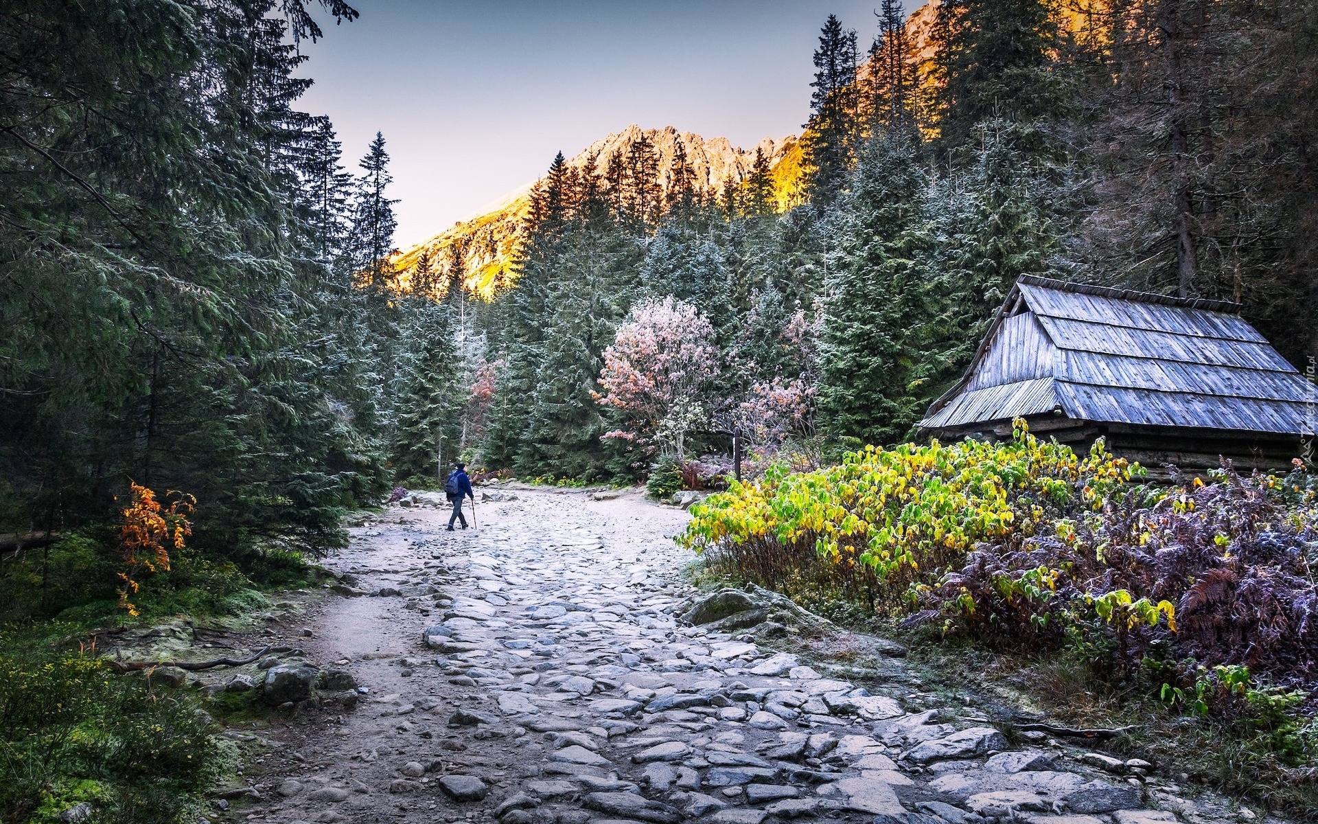 Edytor tapety: Turysta na kamienistej ścieżce w Tatrach