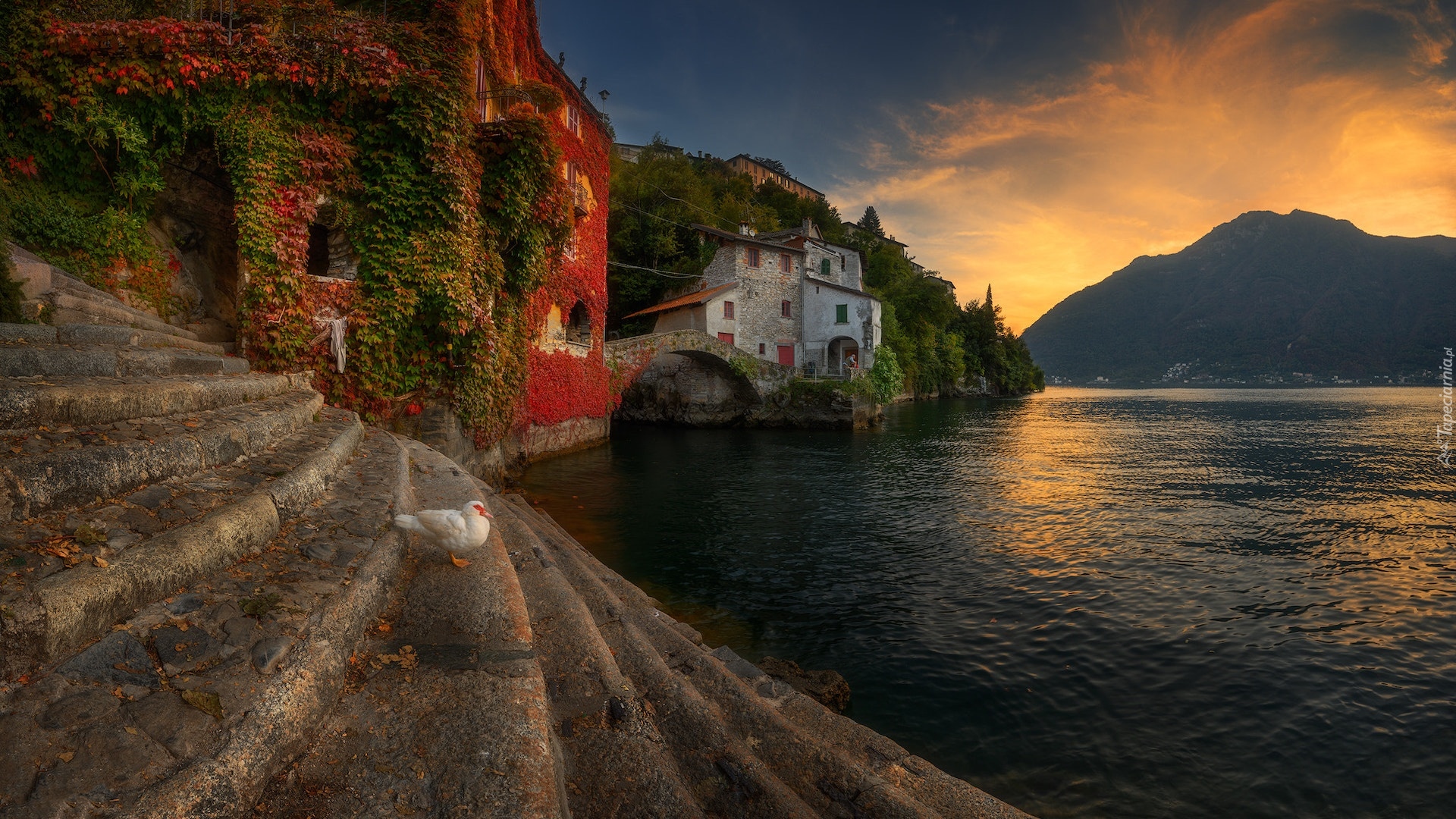Edytor tapety: Kamienne schody i domy nad jeziorem Como