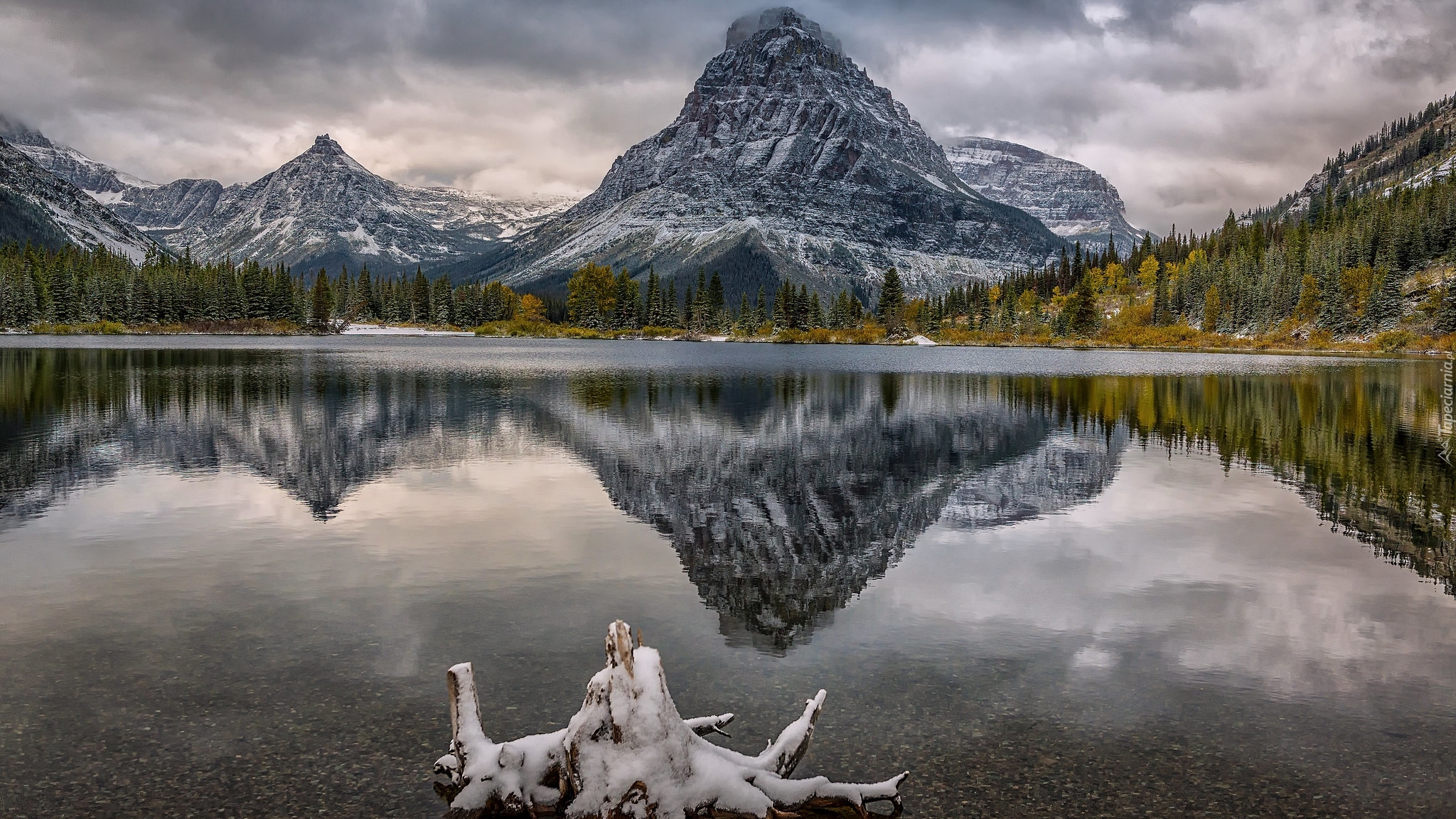 Edytor tapety: Jezioro Pray Lake i góra Sinopah Mountain