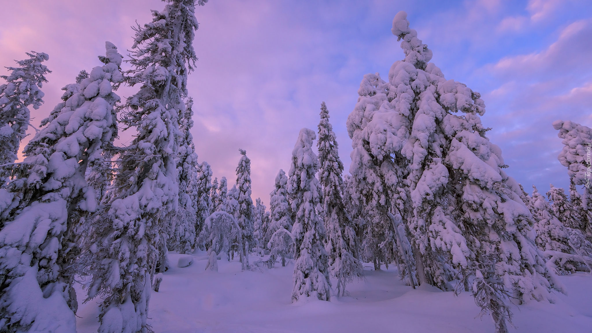 Edytor tapety: Drzewa obsypane śniegiem zimową porą