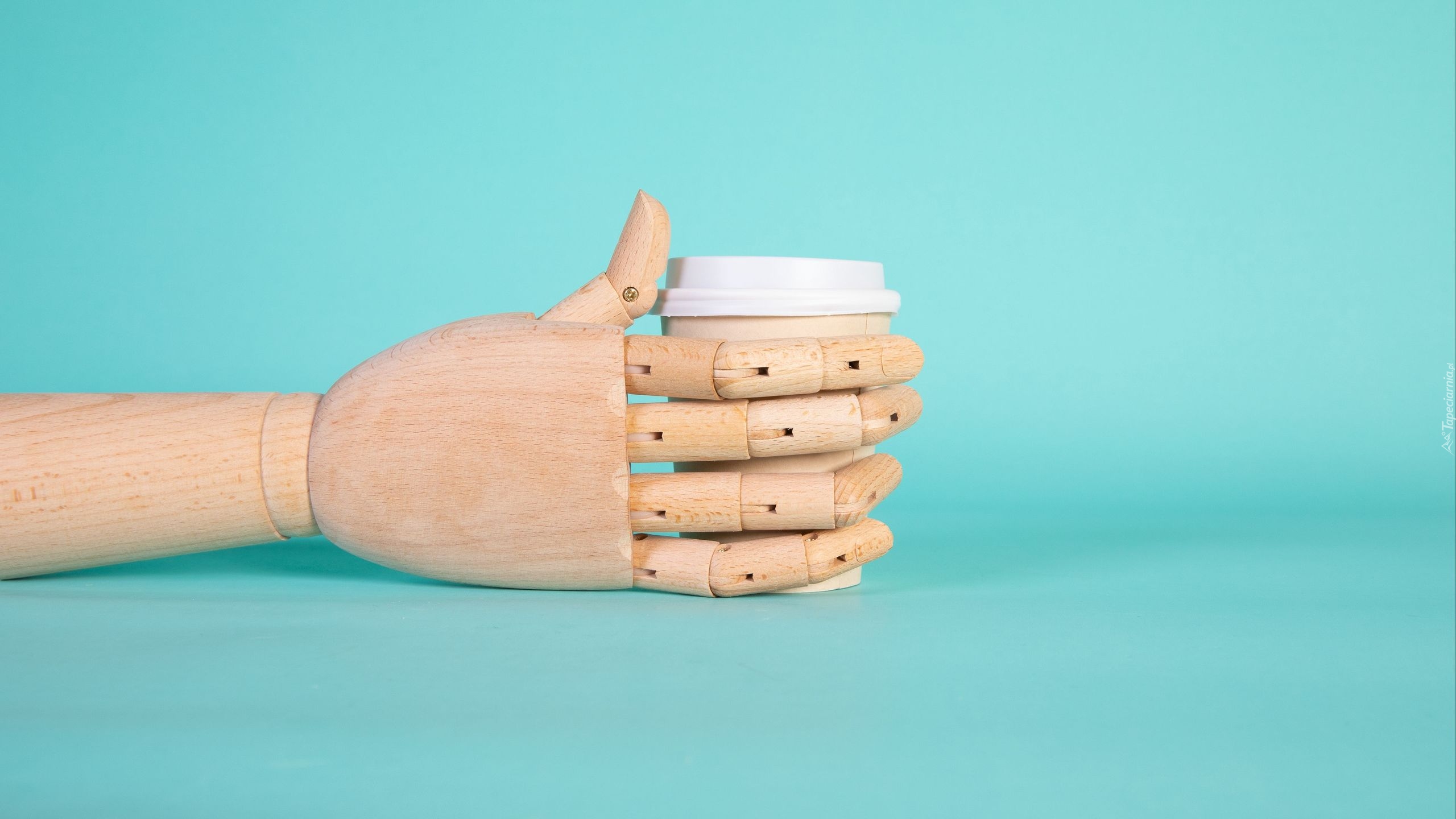 Edytor tapety: Drewniana dłoń przy kubku