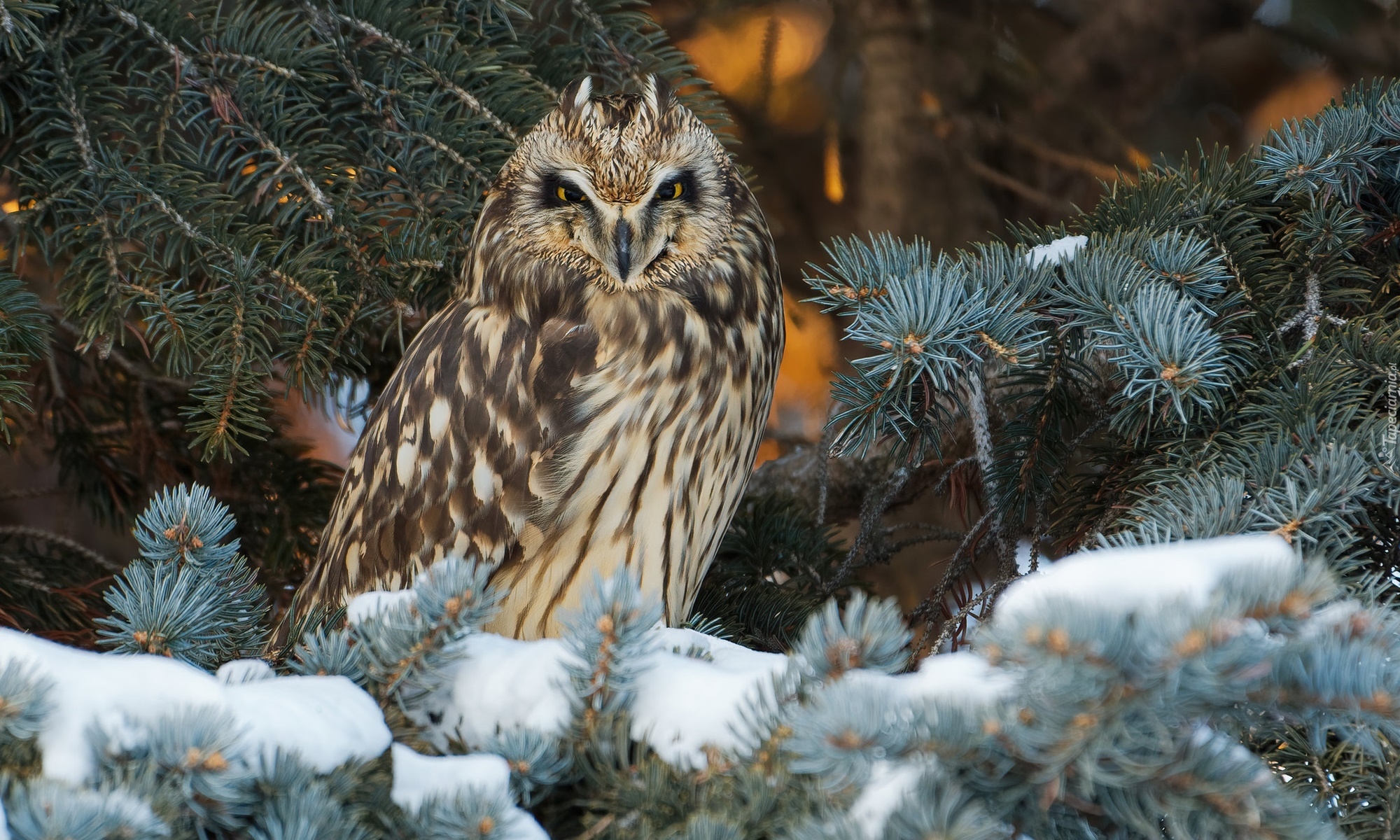 Edytor tapety: Uszatka błotna na gałązce świerku