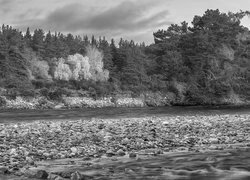Edytor tapety: Jesienny las nad kamienistą rzeką w Parku Narodowym Cairngorms