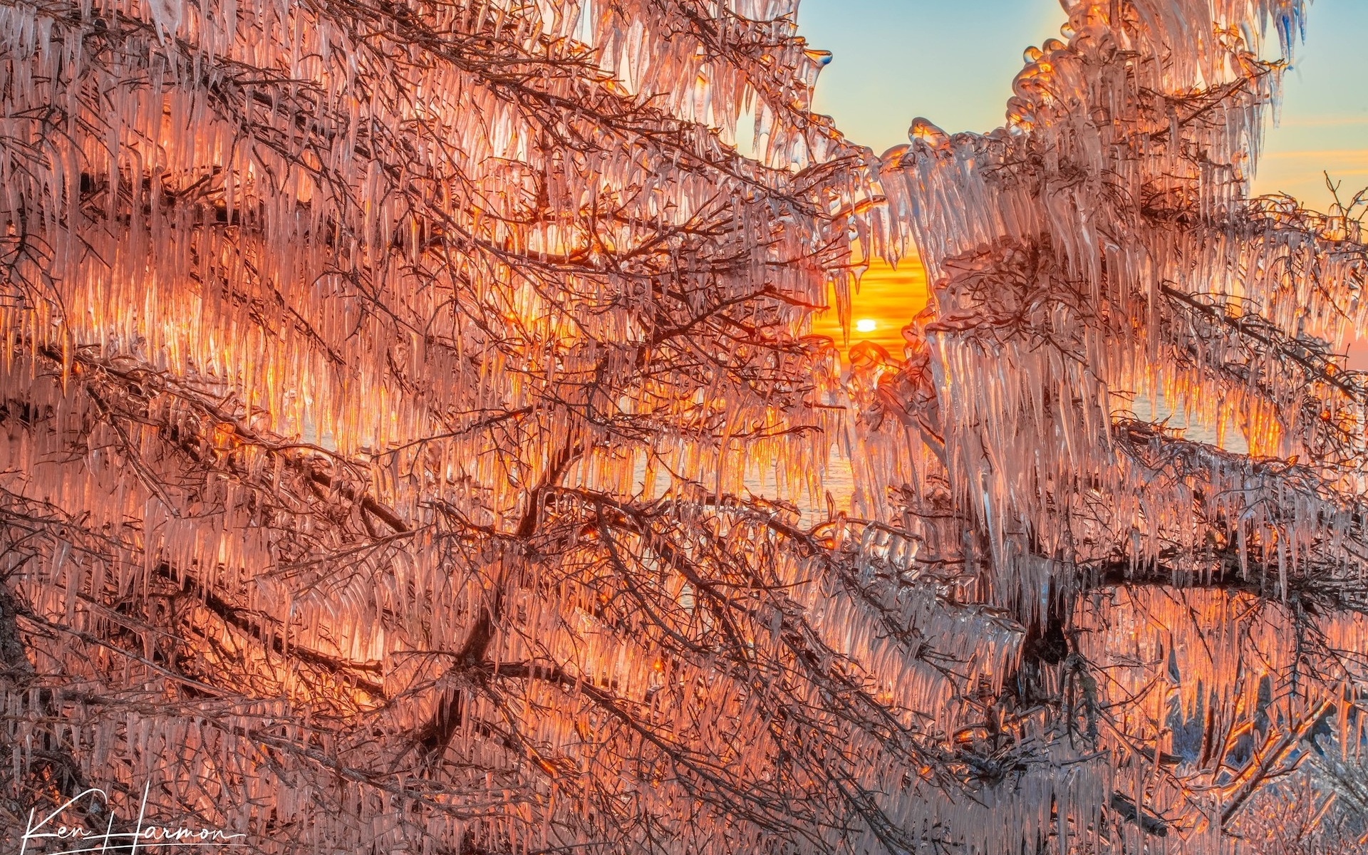 Edytor tapety: Oblodzone gałęzie w promieniach słońca