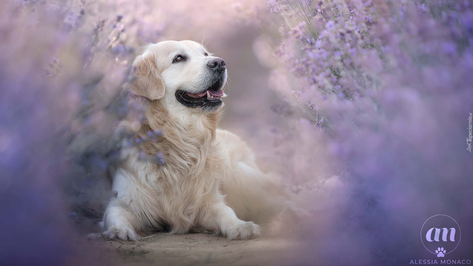 Edytor tapety: Leżący golden retriever