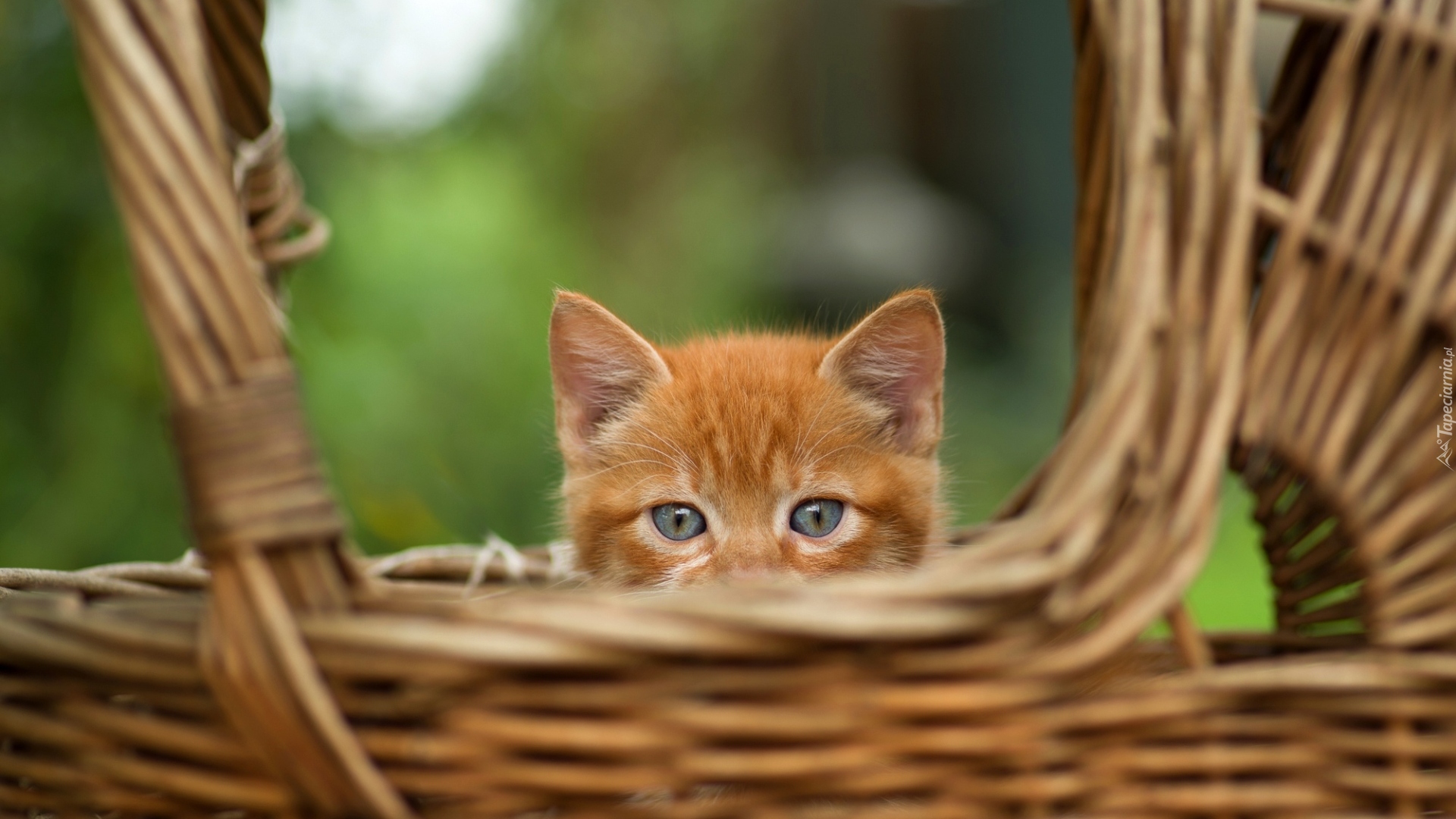Edytor tapety: Głowa rudego kota wystająca z wiklinowego kosza