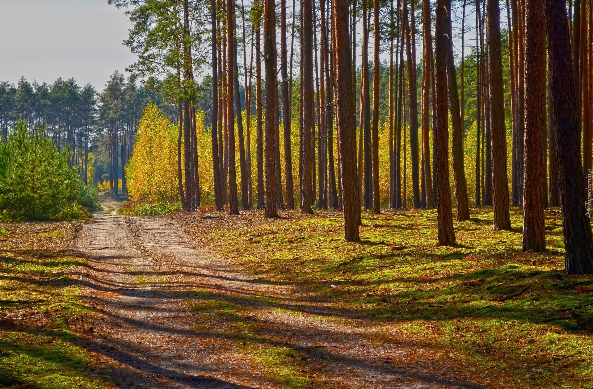 Edytor tapety: Ścieżka na skraju słonecznego lasu