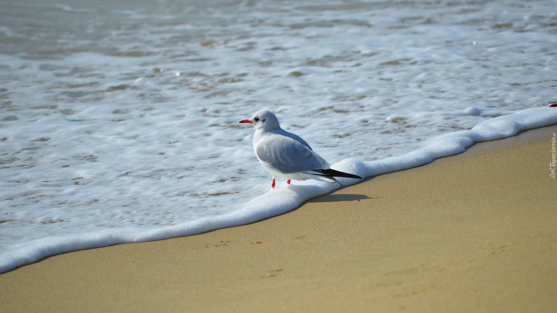 Edytor tapety: Mewa na morskiej plaży