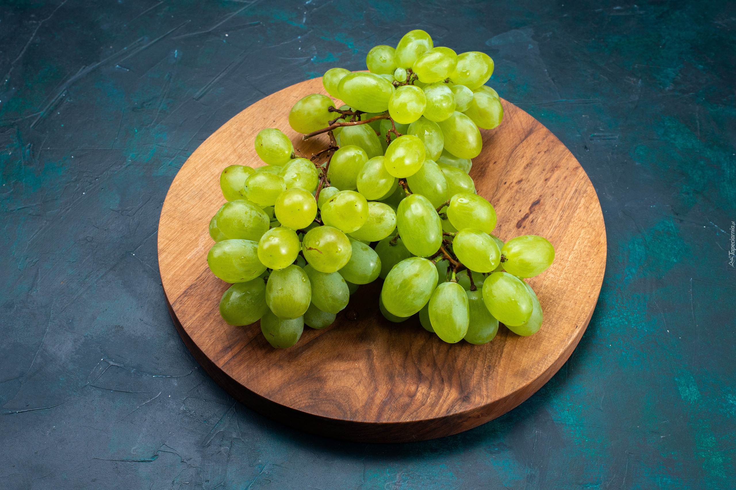 Edytor tapety: Zielone winogrona na okrągłej desce