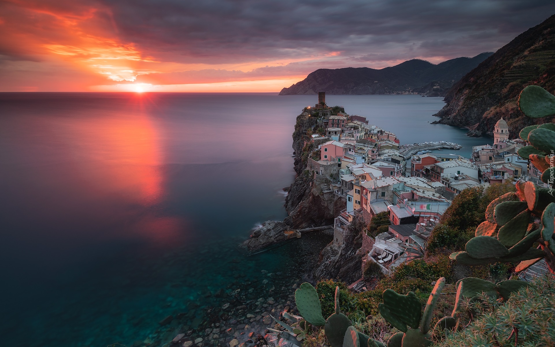 Edytor tapety: Vernazza na Wybrzeżu Liguryjskim o zachodzie słońca