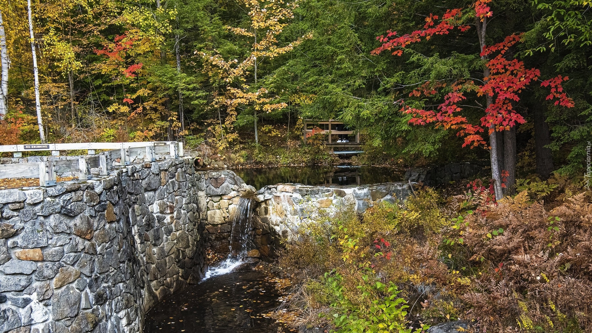 Edytor tapety: Woda spływająca po murku w jesiennym lesie