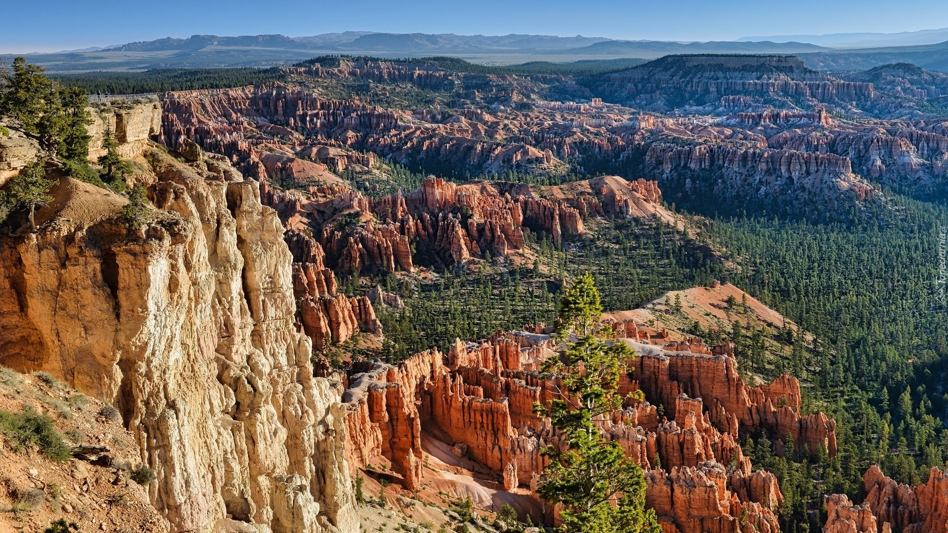 Edytor tapety: Rozświetlone skały i las w Bryce Canyon