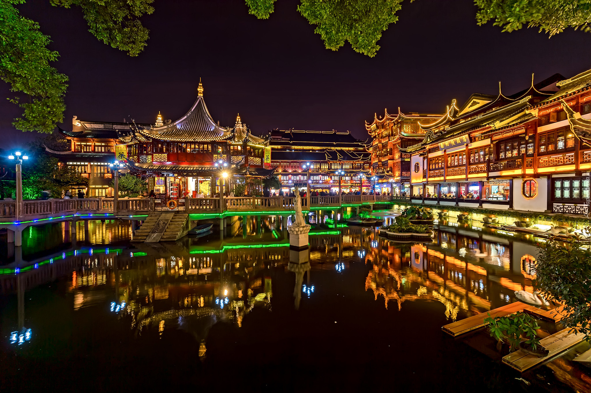 Edytor tapety: Oświetlony nocą Pawilon Huxin w Ogrodzie Yuyuan
