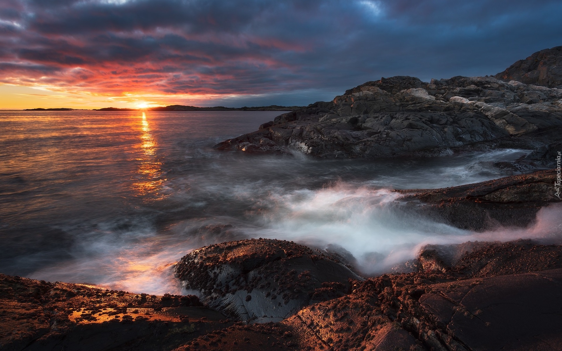Edytor tapety: Zapadający zmierzch nad wybrzeżem