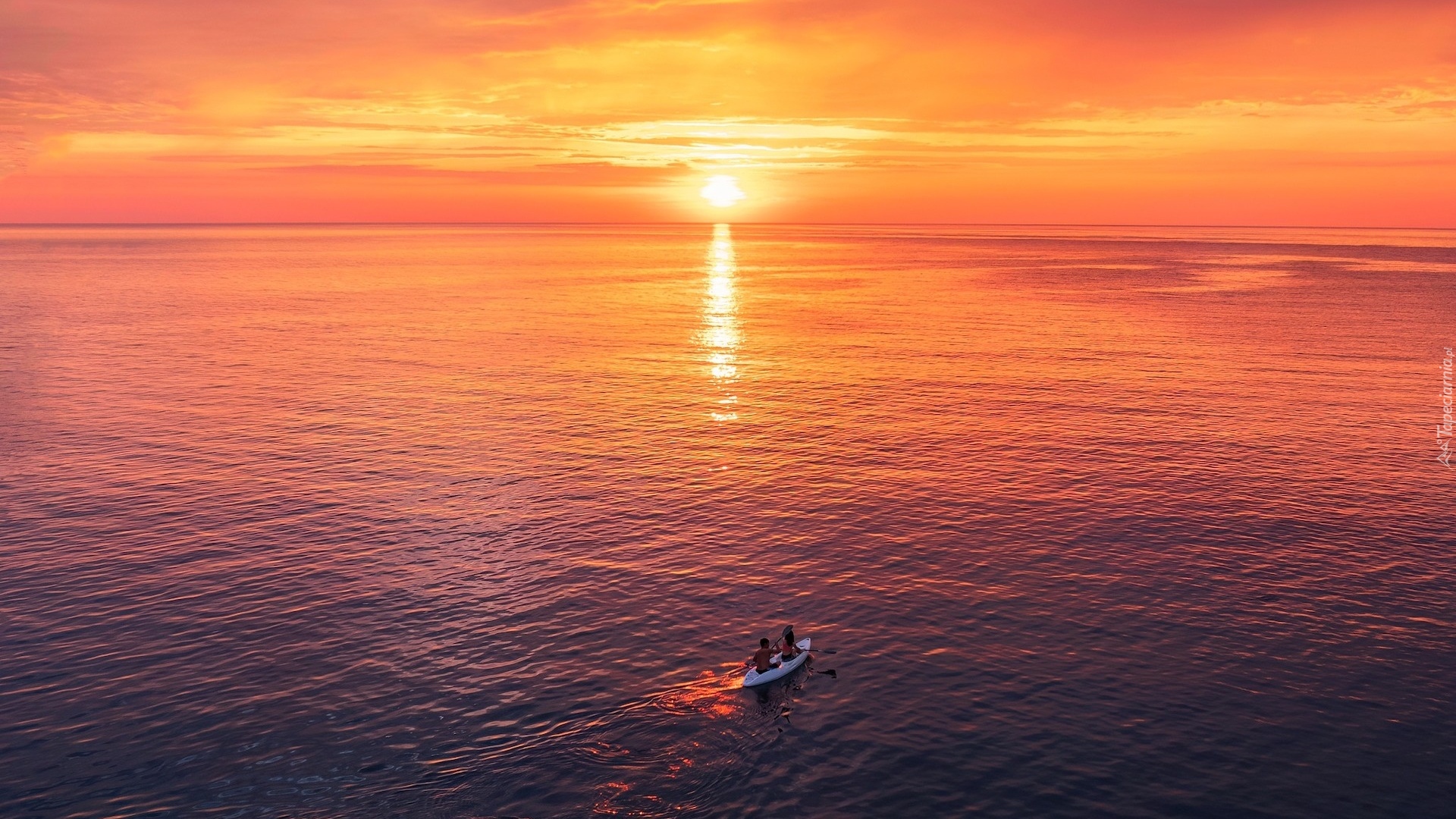 Edytor tapety: Kajak na morzu o zachodzie słońca
