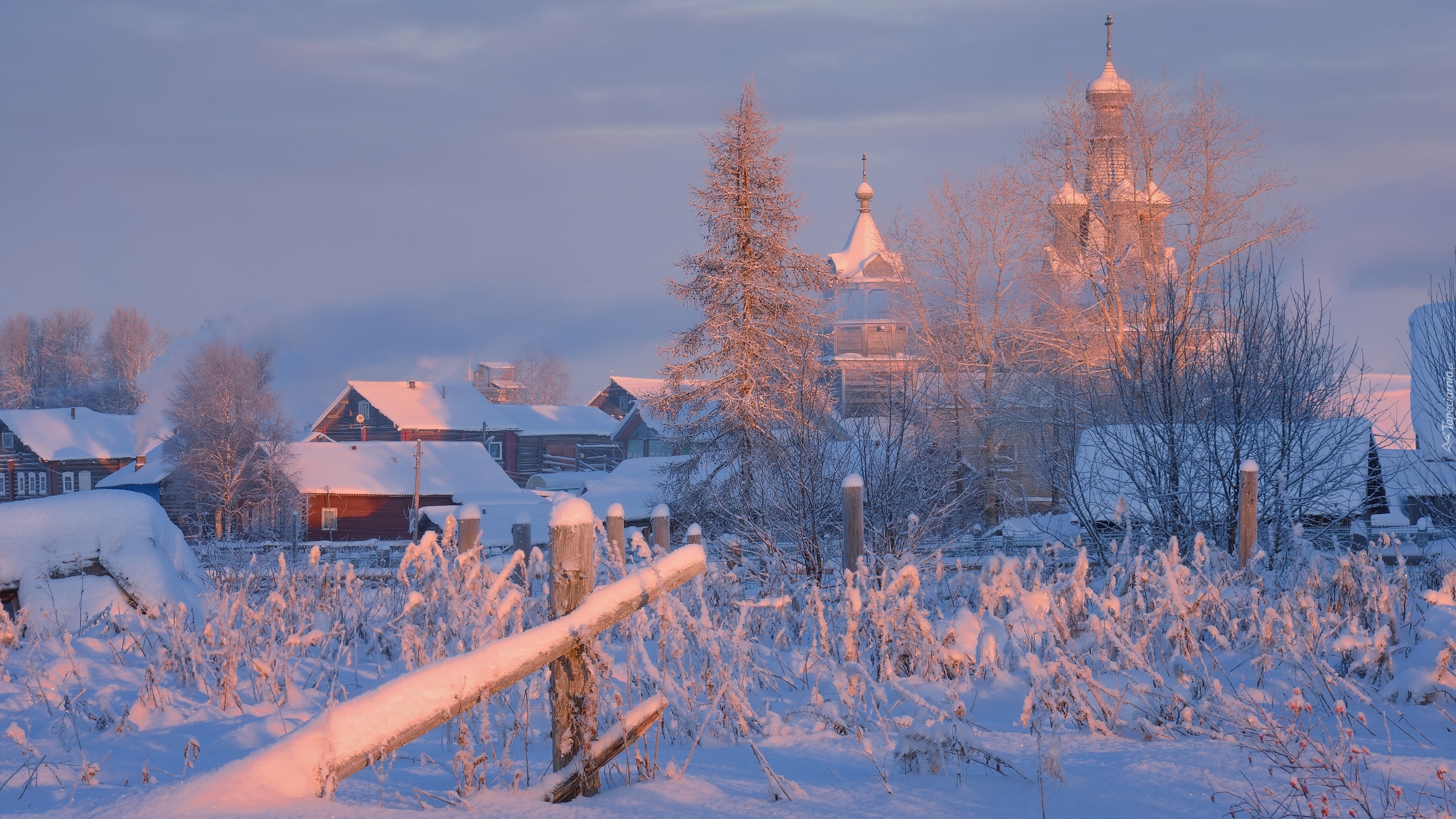 Edytor tapety: Wieś Kimzha zimową porą