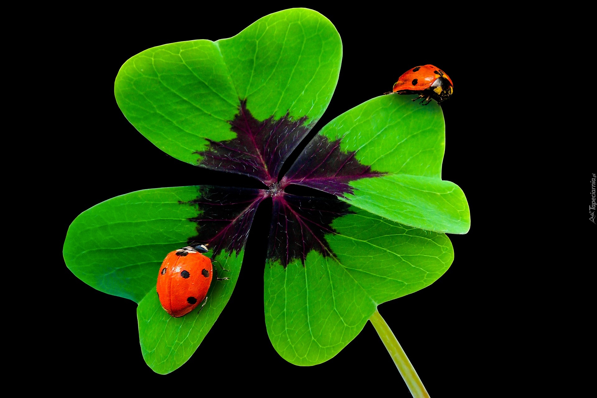 Edytor tapety: Dwie biedronki na czterolistnej koniczynie