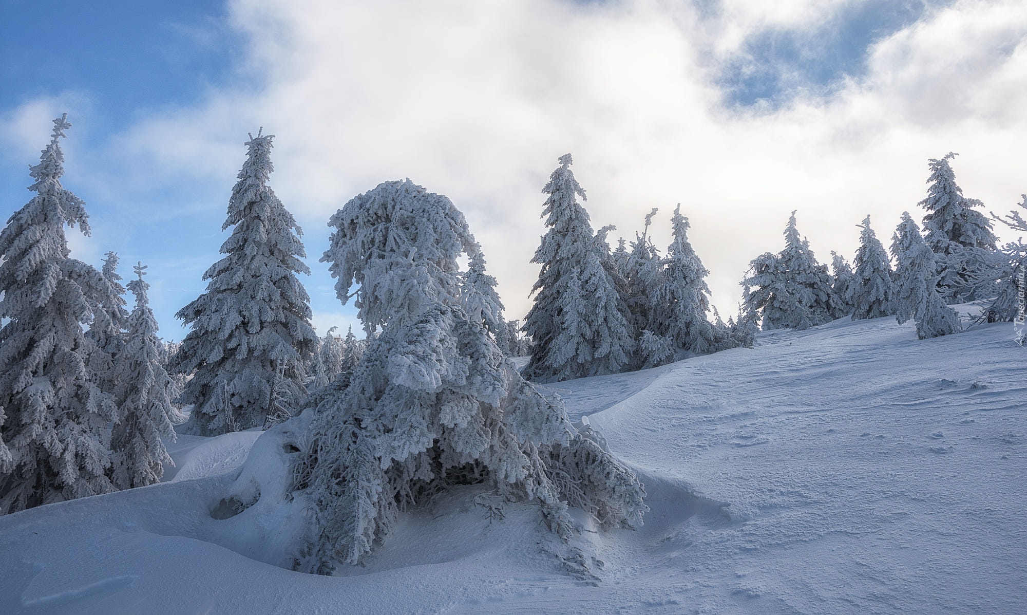 Edytor tapety: Ośnieżone drzewa na polu w zaspach