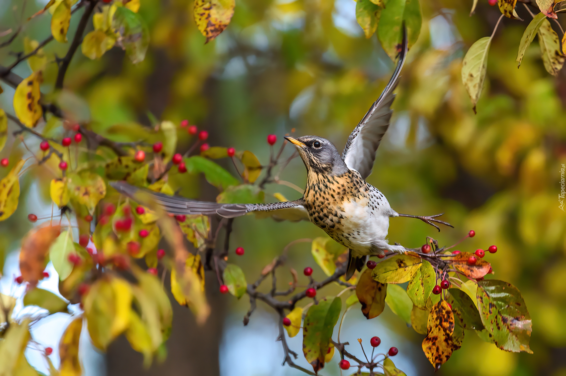 Edytor tapety: Kwiczoł zrywajacy się do lotu