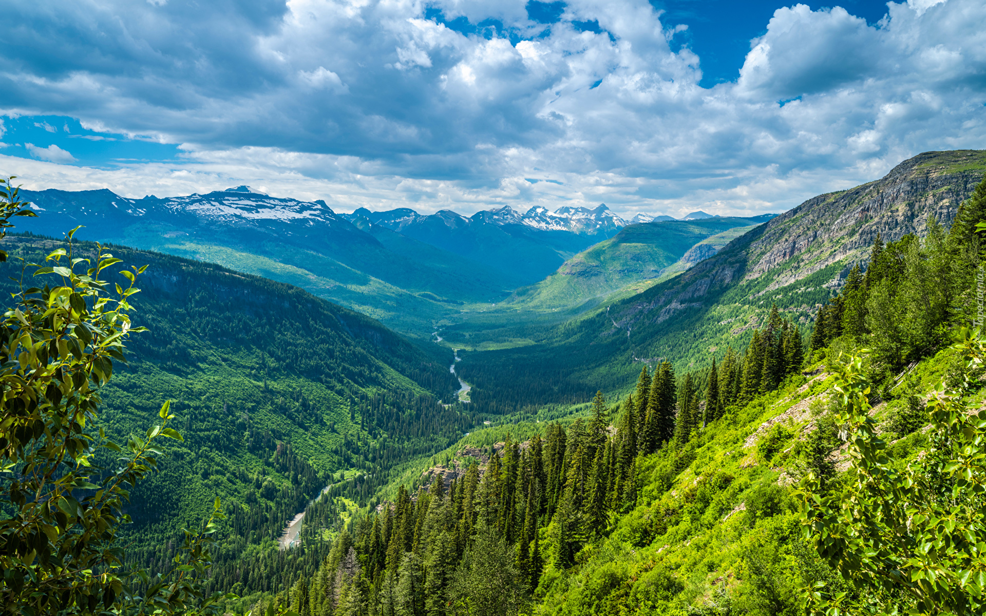 Edytor tapety: Drzewa na zboczach gór i dolina