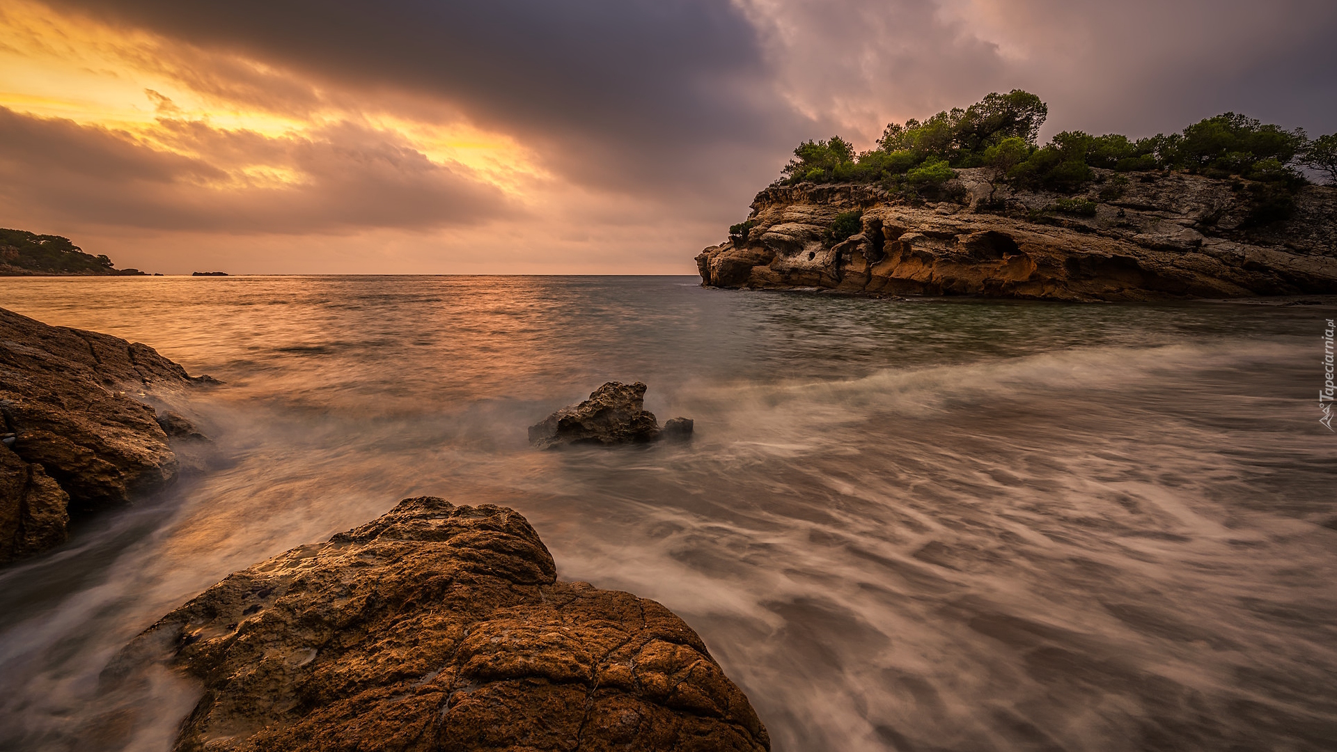 Edytor tapety: Drzewa na skałach na wybrzeżu Majorki