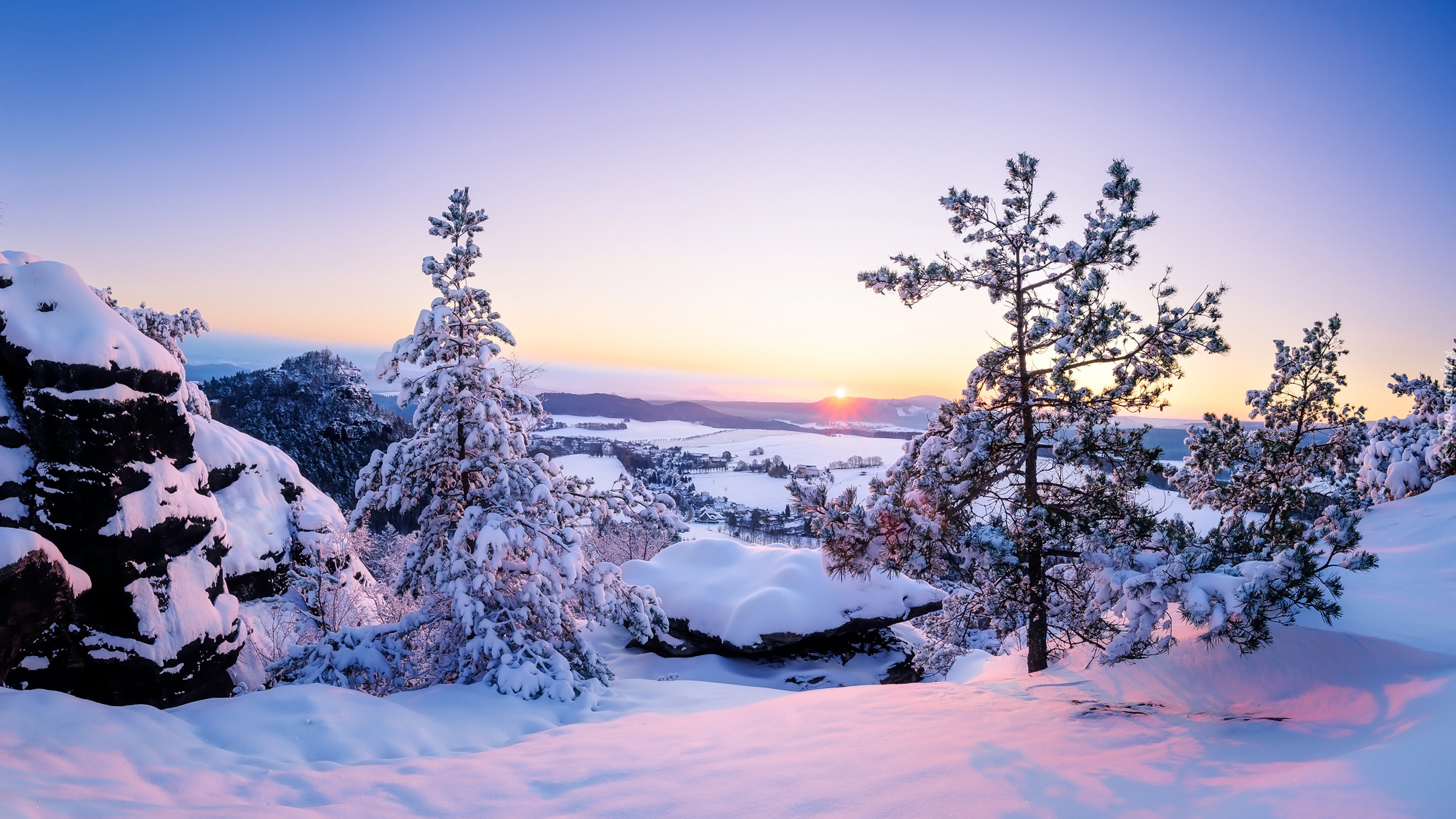 Edytor tapety: Ośnieżone drzewa i skały w Górach Połabskich