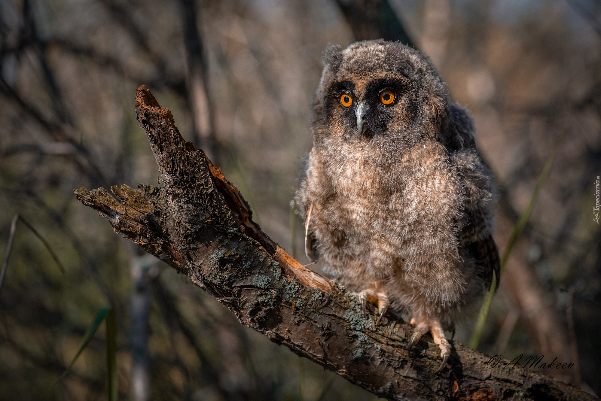 Edytor tapety: Pisklę sowy uszatki na konarze