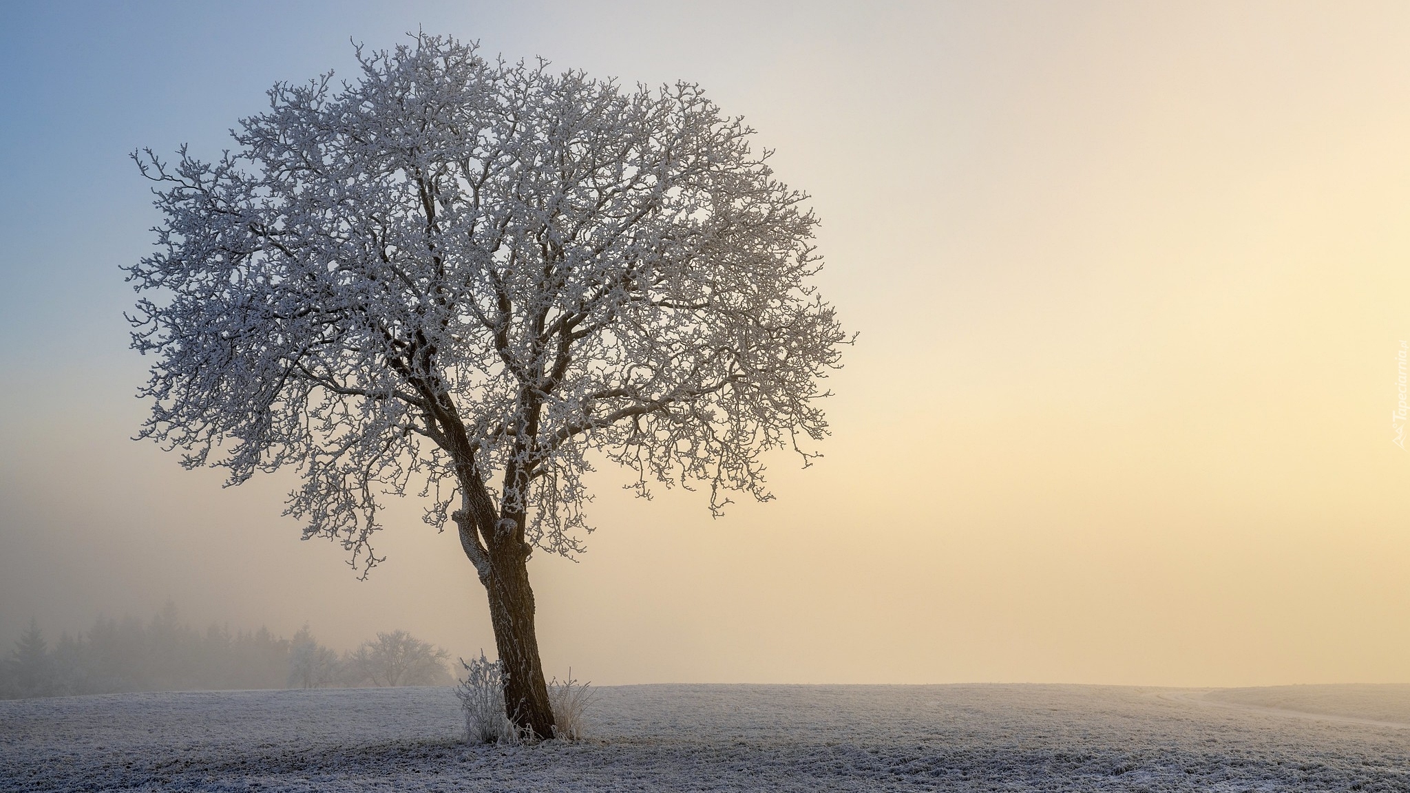 Edytor tapety: Drzewo na zamglonym polu