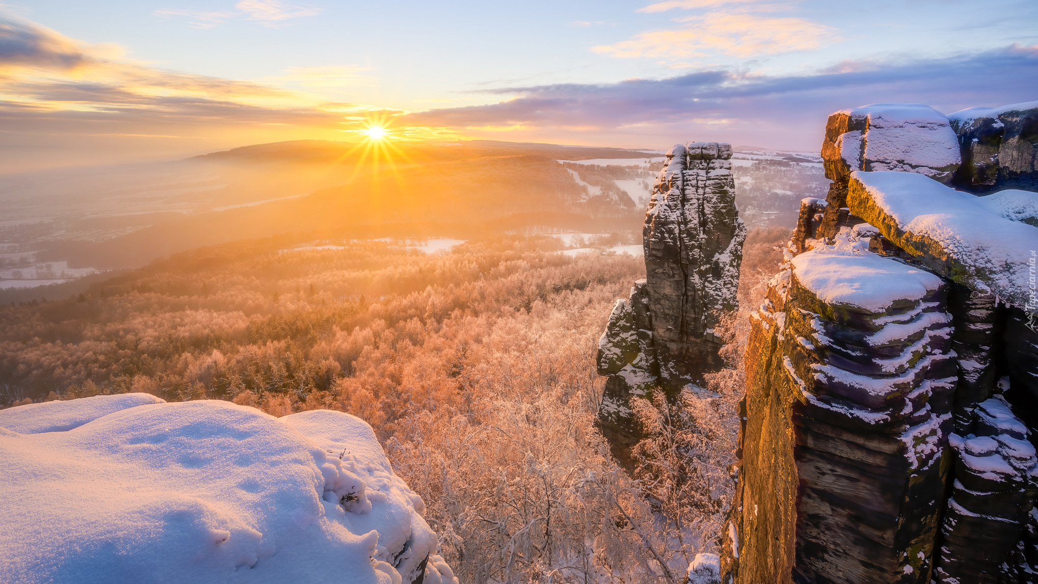 Edytor tapety: Ośnieżone drzewa i skały w Górach Połabskich