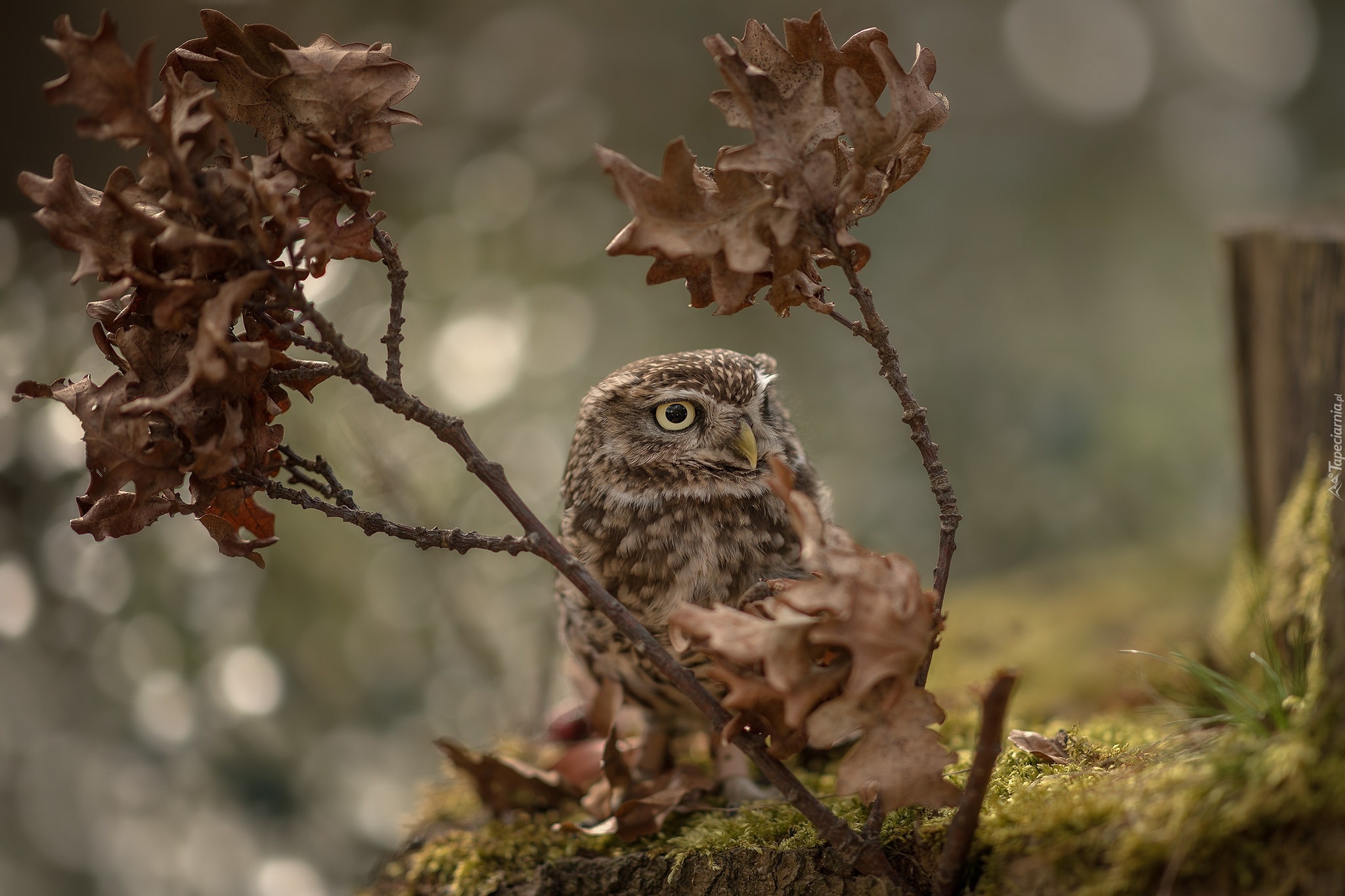 Edytor tapety: Pójdźka zwyczajna przy gałązkach