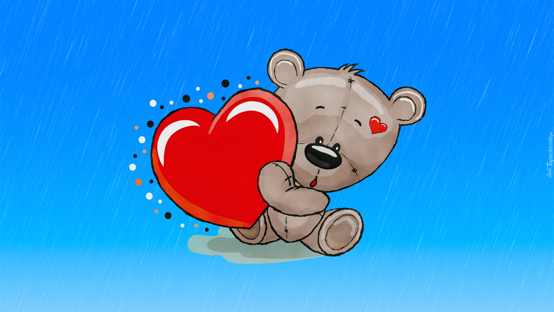 Edytor tapety: Miś z czerwonym sercem na niebieskim tle