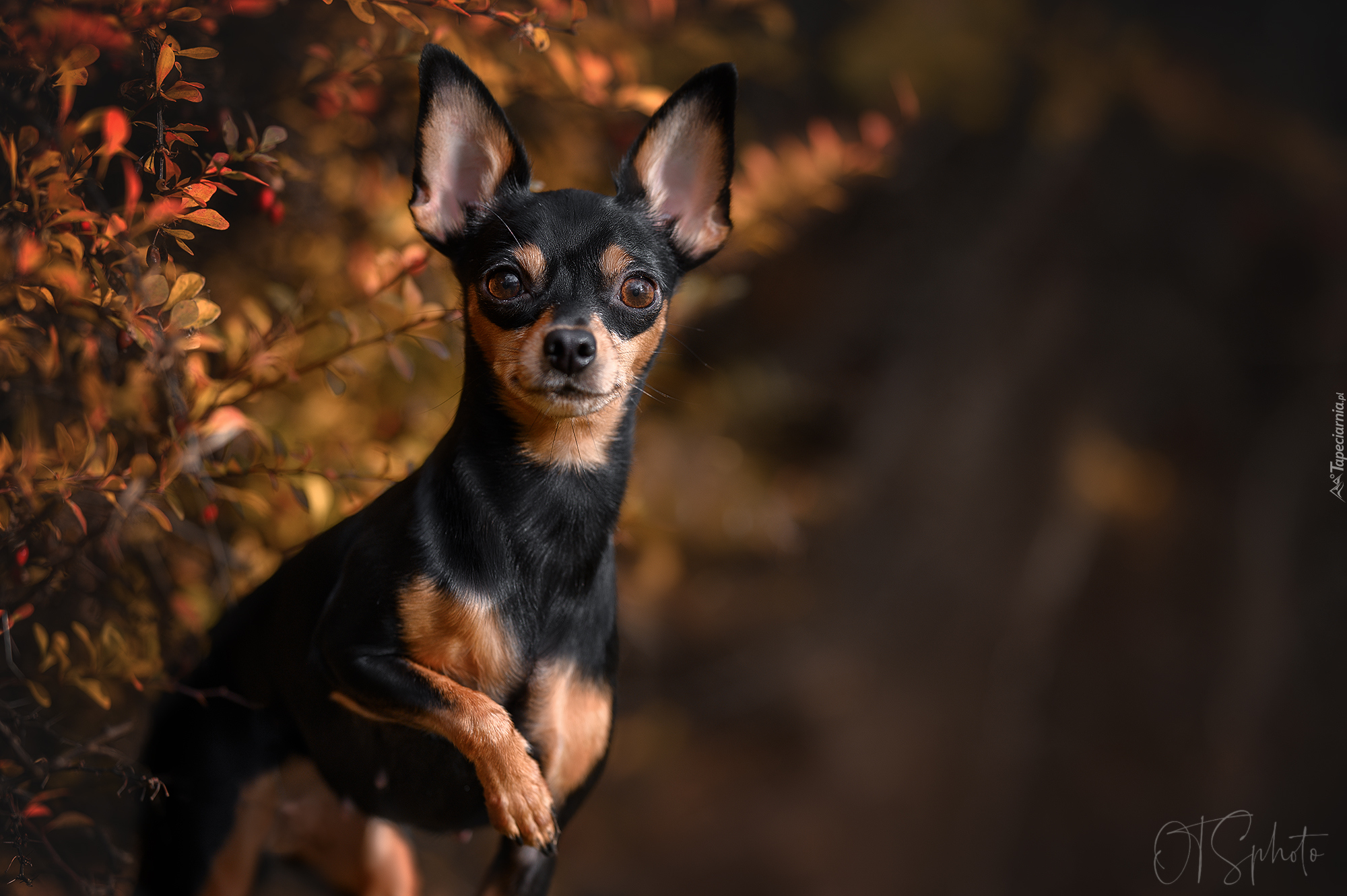 Edytor tapety: Chihuahua pod krzewem berberysu