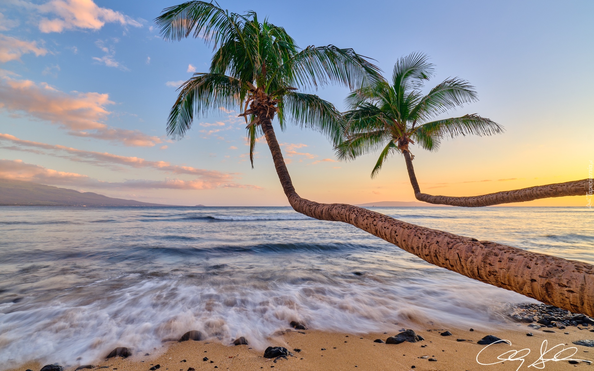 Edytor tapety: Dwie pochylone palmy na hawajskiej plaży