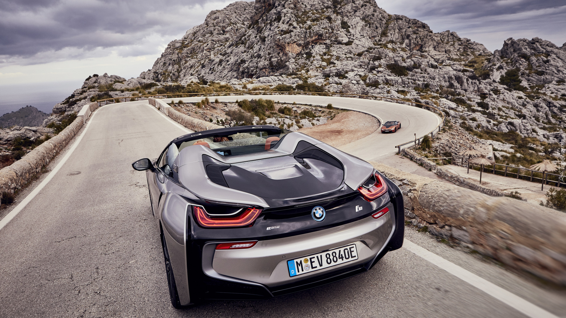 Edytor tapety: BMW i8 na drodze w górach