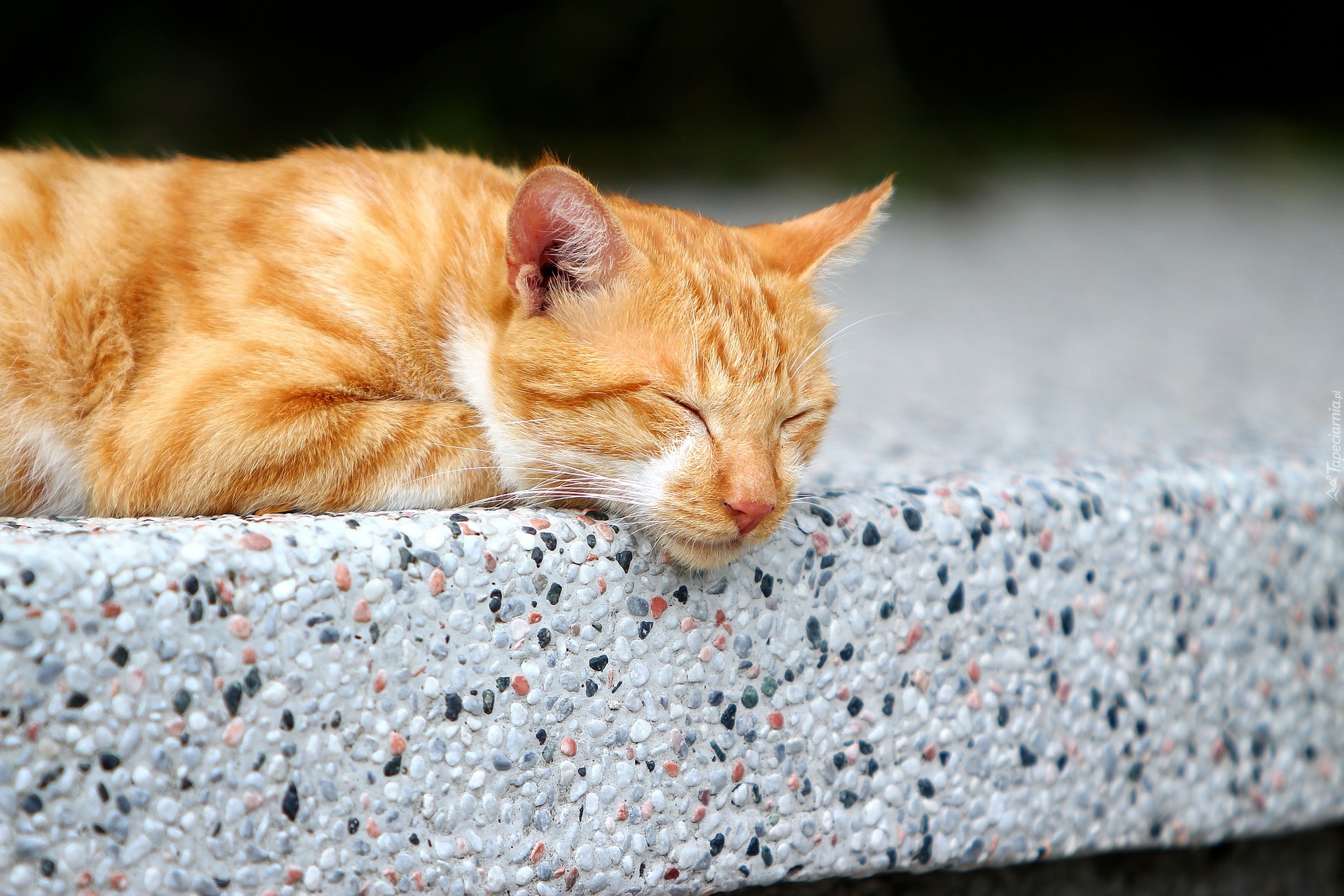Edytor tapety: Rudy kot śpiący na murku