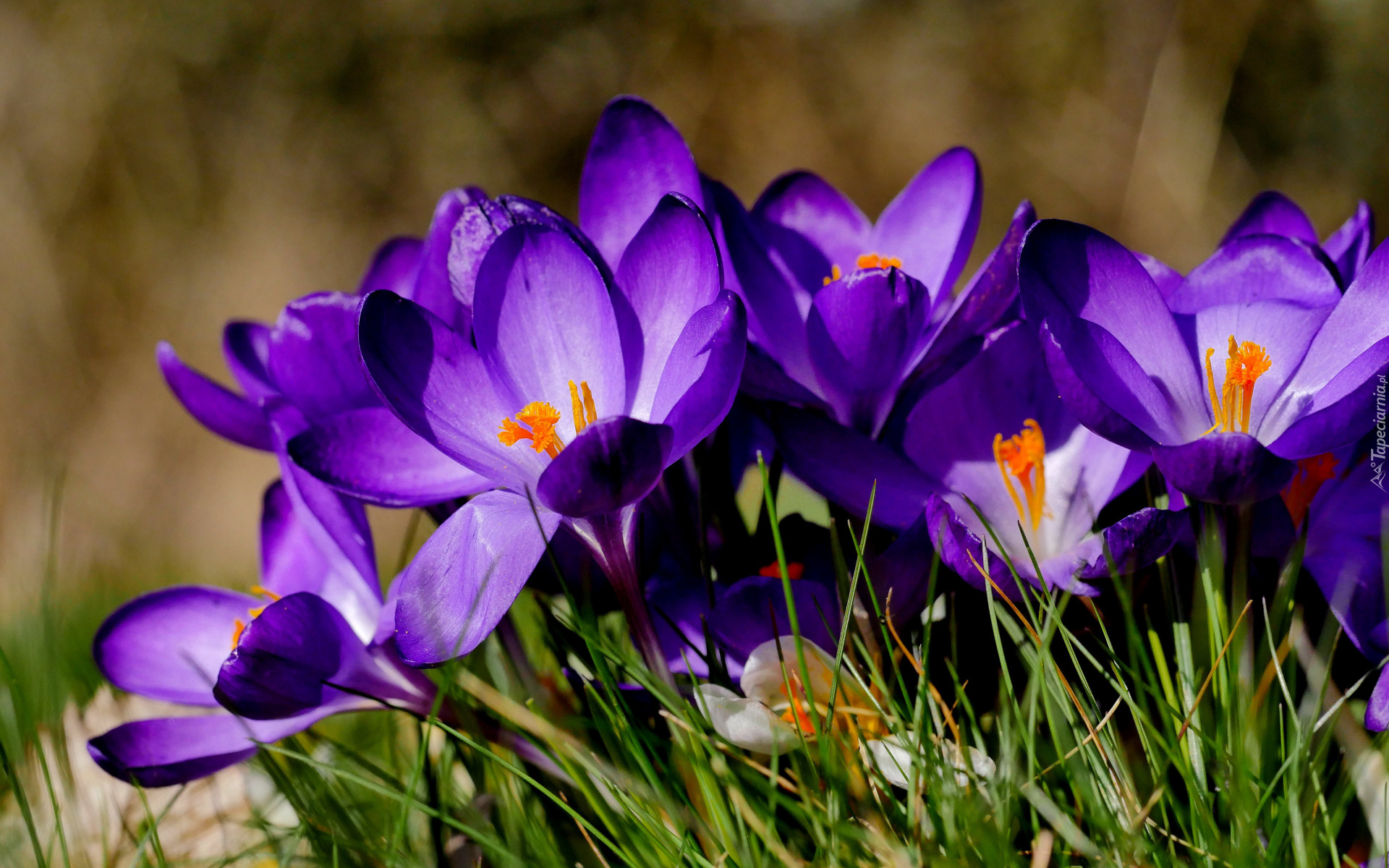 Edytor tapety: Fioletowe rozkwitnięte krokusy