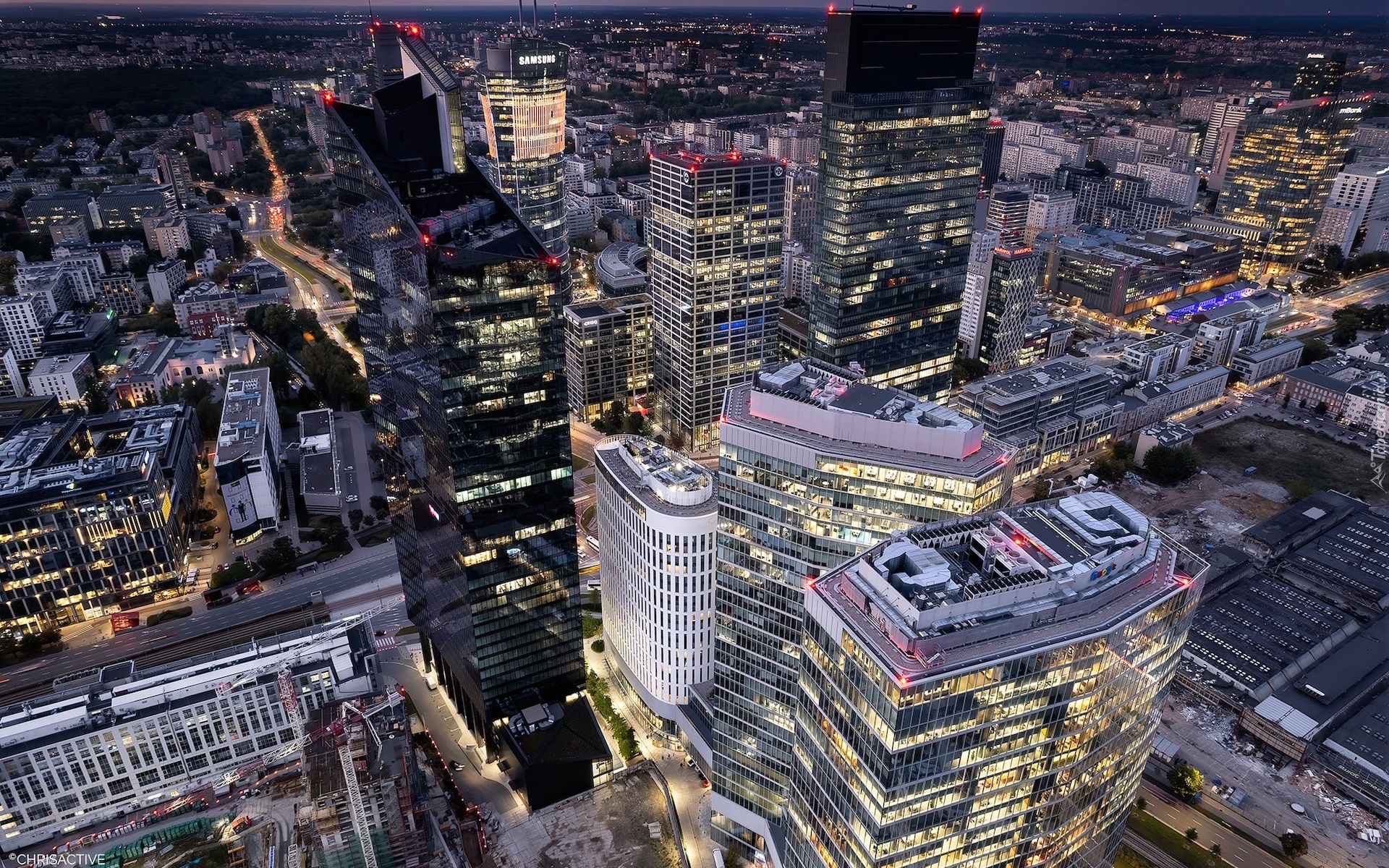 Edytor tapety: Centrum Warszawy z lotu ptaka