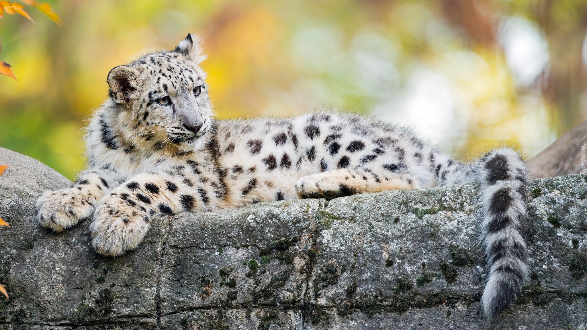 Edytor tapety: Wypoczywający irbis na skale