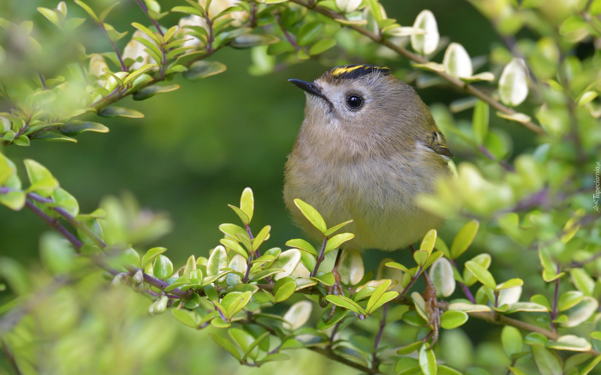 Edytor tapety: Mysikrólik zwyczajny na gałązce