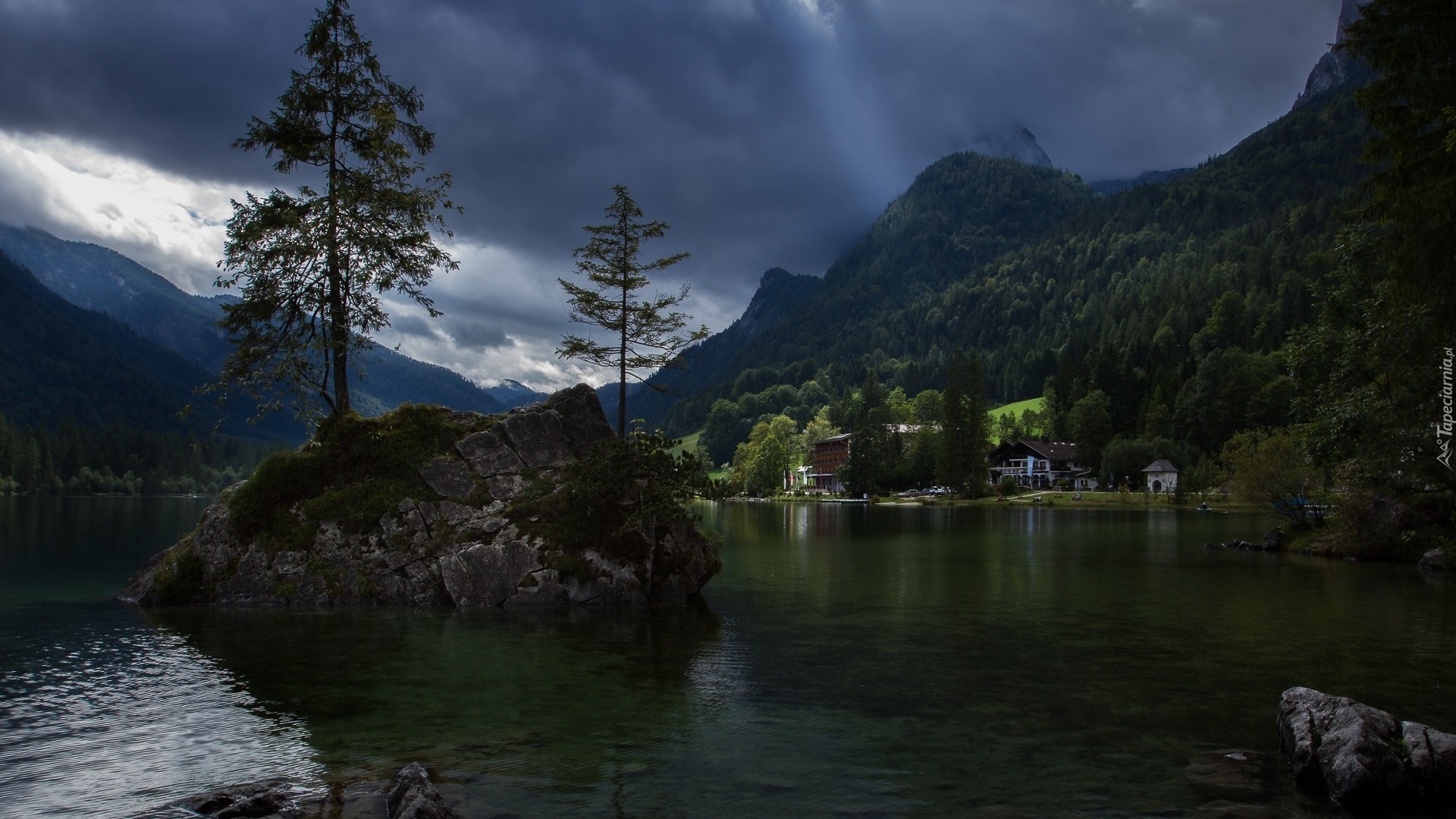 Edytor tapety: Ciemne chmury nad jeziorem Hintersee